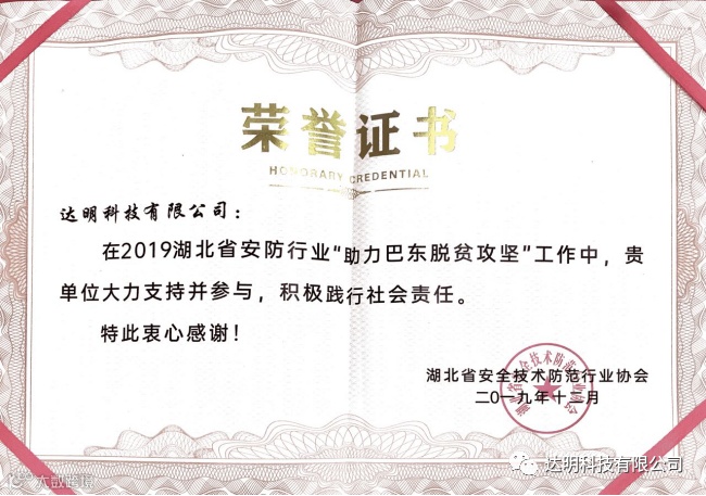 1、2019年湖北安防行业助力精准扶贫项献单位;