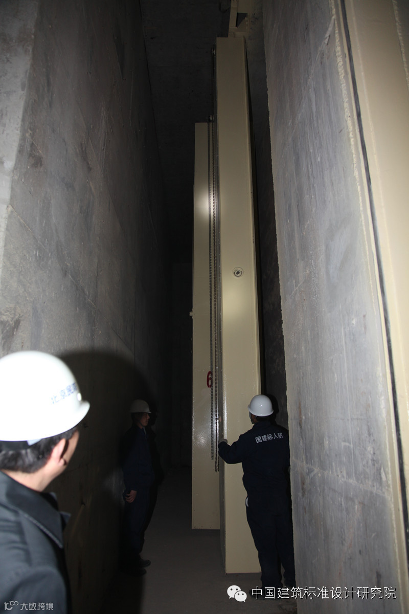 以玉带河大街站为例,站顶板设置了8个水平采光孔,每个采光孔尺寸为6m×4m,且洞口之间间距较小,仅为2m左右。由于国内目前并无大型水平孔洞防护的先例,现有的防护设备根本无法满足水平封堵需要,导致了节能设计与车站防护功能无法兼顾。为解决该难题,标准院勇挑重担,在北京市民防局的支持下,成功研发出新型防护设备——水平滑轨式封堵板,成功解决了地下车站顶板采光孔防护问题,填补了国内水平封堵防护技术的空白。