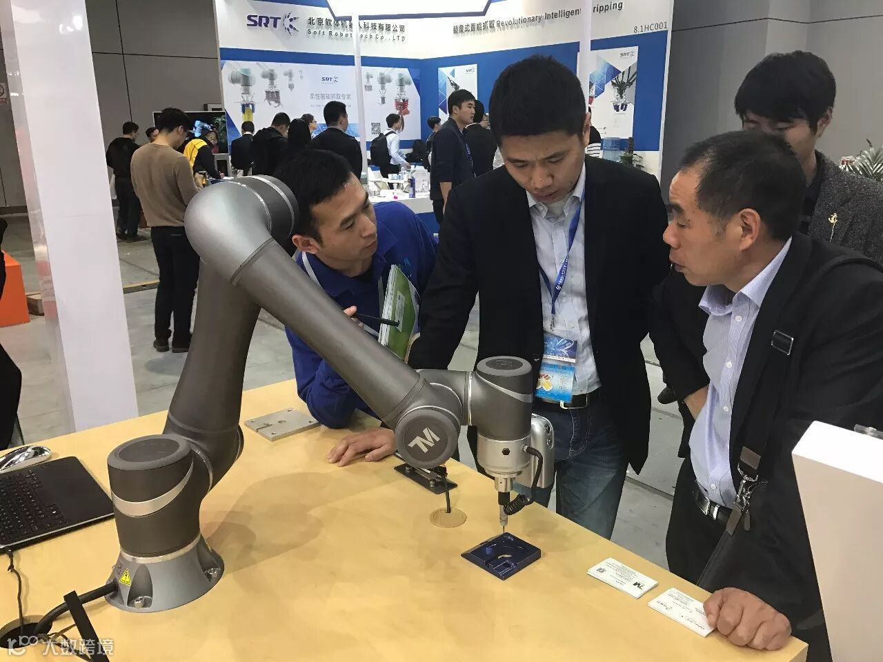 工博会开展第二天,达明机器人摊位(8.1HC109展位)依旧热闹滚滚!国内外买主齐聚,亲身体验达明机器人TM5聪明简单安全的产品特性!