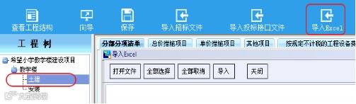 (2)填写完成后,选择单位工程,进入“分部分项清单”页签,点击【导入Excel】;