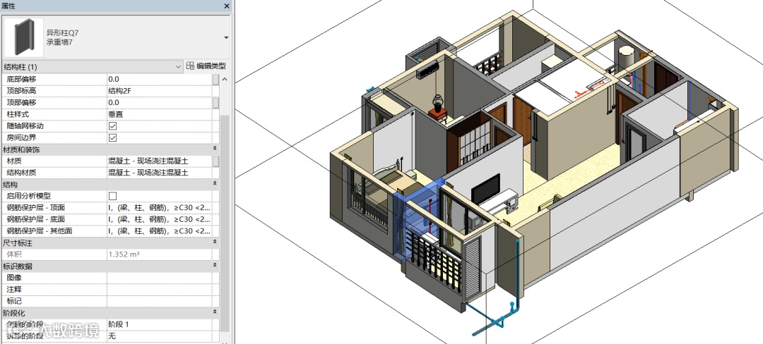 Step1: 根据施工图纸创建BIM模型,明确房屋结构类型、结构布置、装修标准、机电管线布置,以及组成该房屋所用构件、材料的完整信息。