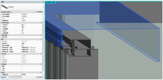 但是幕墙中间的分隔带部分轨迹与幕墙轨迹一致,那么如何实现实现转角处的无缝连接呢?为了建模简便直线部分我们可以使用基于线的公制常规模型来创建,如图: