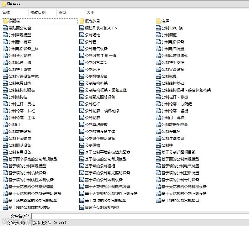 新建族,Revit提供了大量的族样板文件,文件位置在这里: