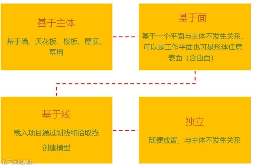 需要选择合适的族样板文件。族样板文件根据族载入项目中放置的特性,这里的族是指具有具体形体的族,不含注释族等二维族。基本上可以分为如下几种,