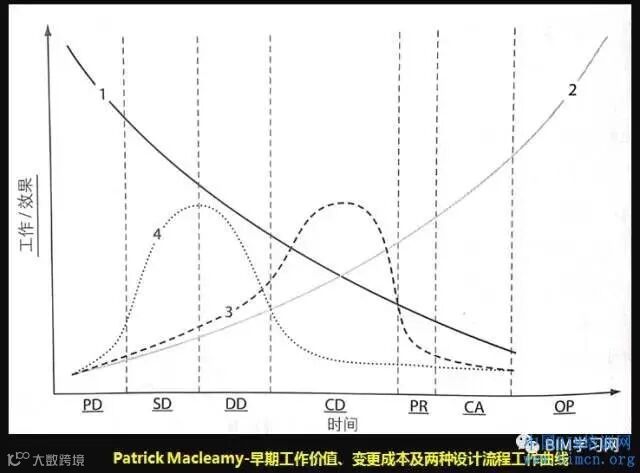 根据这张图的思路,概念设计、方案设计修改成本较低,但对项目的影响较高,在概念设计、方案设计环节就采用BIM手段进行设计,所带来的效益,要比在施工图环节死砸三维模型出图高得多。