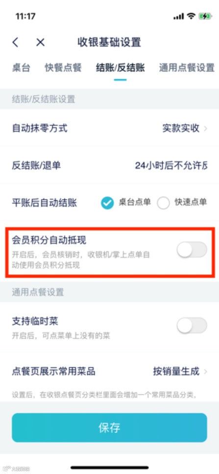 在智掌柜商户端,会员积分自动抵现设置,默认为关闭。当开启开关后,会员核销时收银机和掌上点单以及小程序会自动使用会员积分抵现。收银机V2010001以上版本才支持。