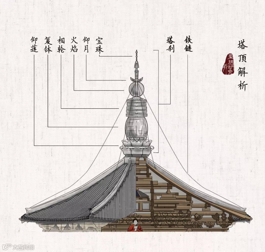 之后各层亦按此方式复制叠加,最终形成了五明四暗的塔身