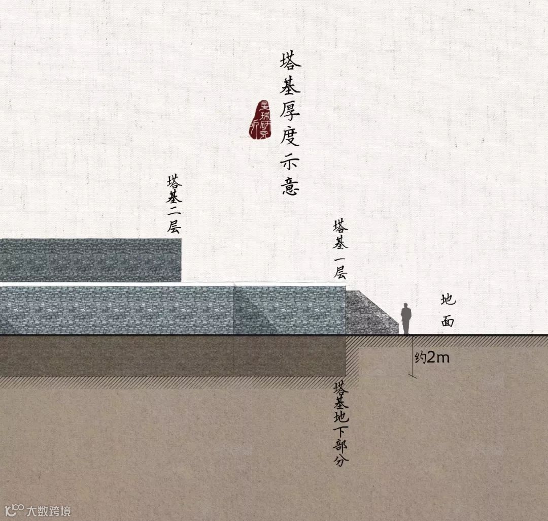 首先,匠师们用石料砌成巨厚的塔基,仅深入地下部分就达2米,总厚度更是超过6.4米,相当于3~4个人的身高。