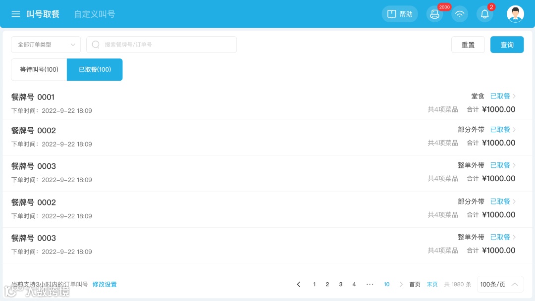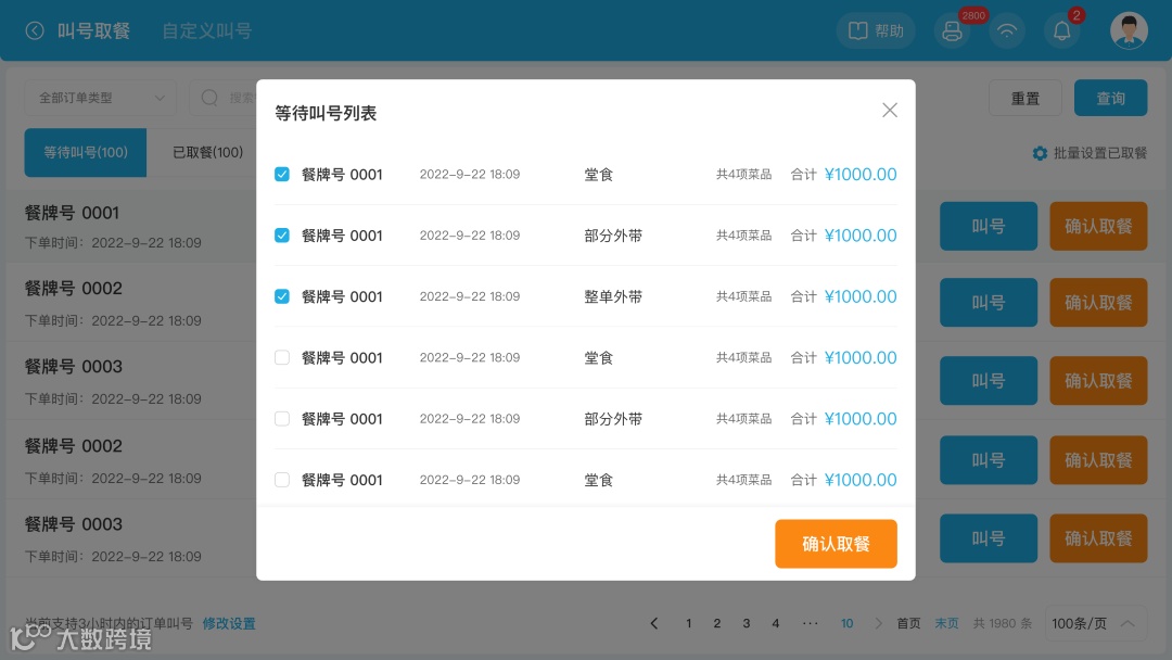 智掌柜码上餐厅“叫号取餐”功能