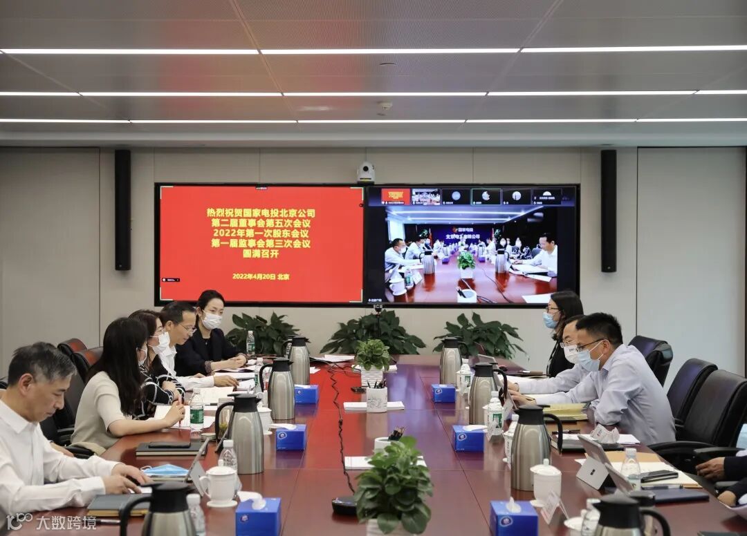 4月20日,北京公司在本部召开第二届董事会第五次会议、2022年第一次股东会和第一届监事会第三次会议。公司股东国家电力投资集团公司、北京诚通工银股权投资基金、中国人寿资产管理有限公司、农银金融资产投资有限公司及中银金融资产投资有限公司股东代表、董事、监事出席会议,公司经营班子成员、总法律顾问、董秘及相关部门人员列席会议。