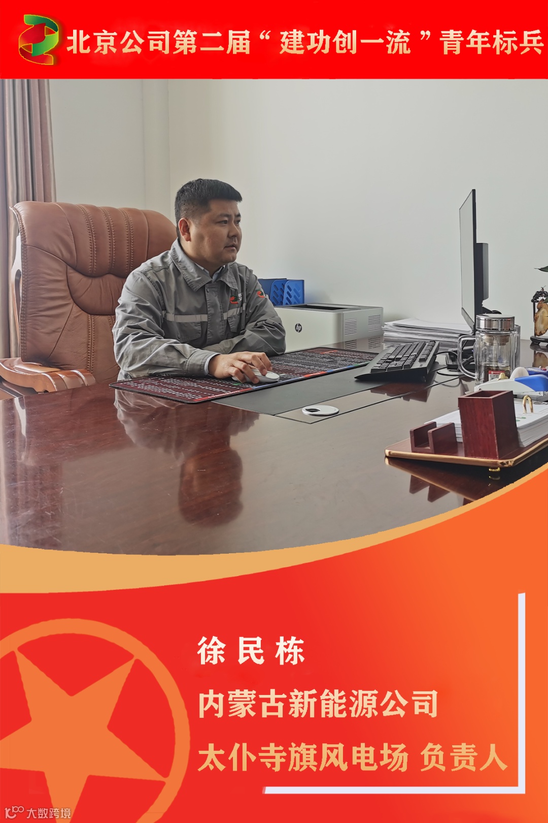作为太仆寺旗风电场负责人,他作风扎实,勤奋务实,锐意进取。自加入内蒙古新能源公司以来,他先后参与了公司其中3个风电场的生产工作。一线工作的经历使他积累了宝贵的经验,在日常工作中他扎实肯干,在生产经营管理中发挥着骨干带头作用。
