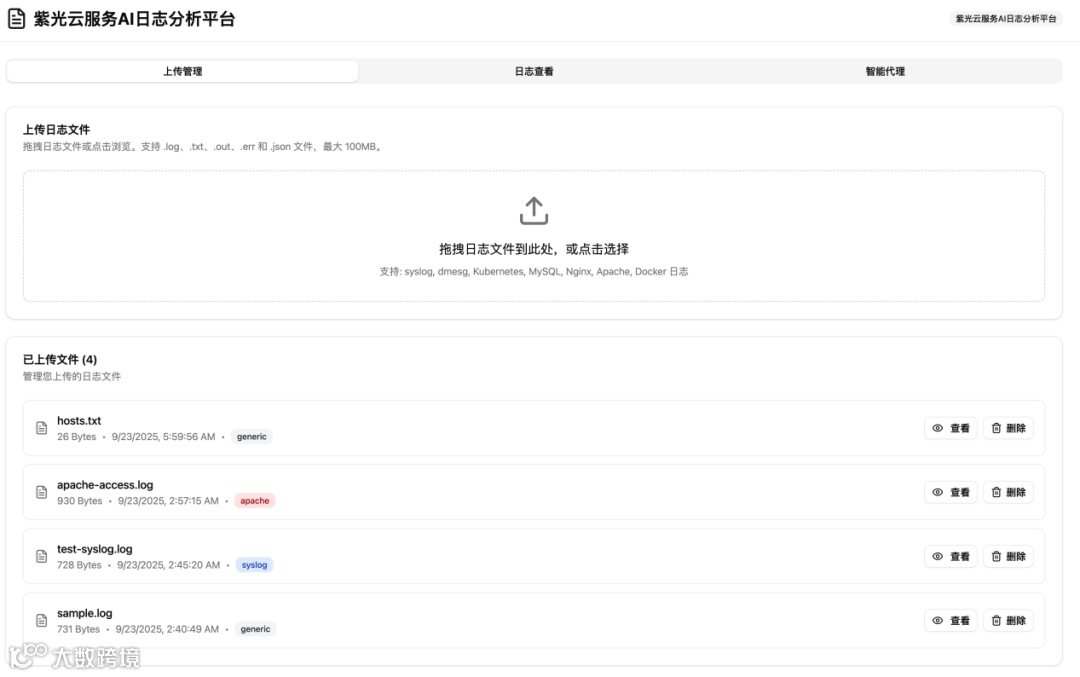 部署轻量级自动化采集代理或手动上传日志,打通日志获取“最后一公里”: