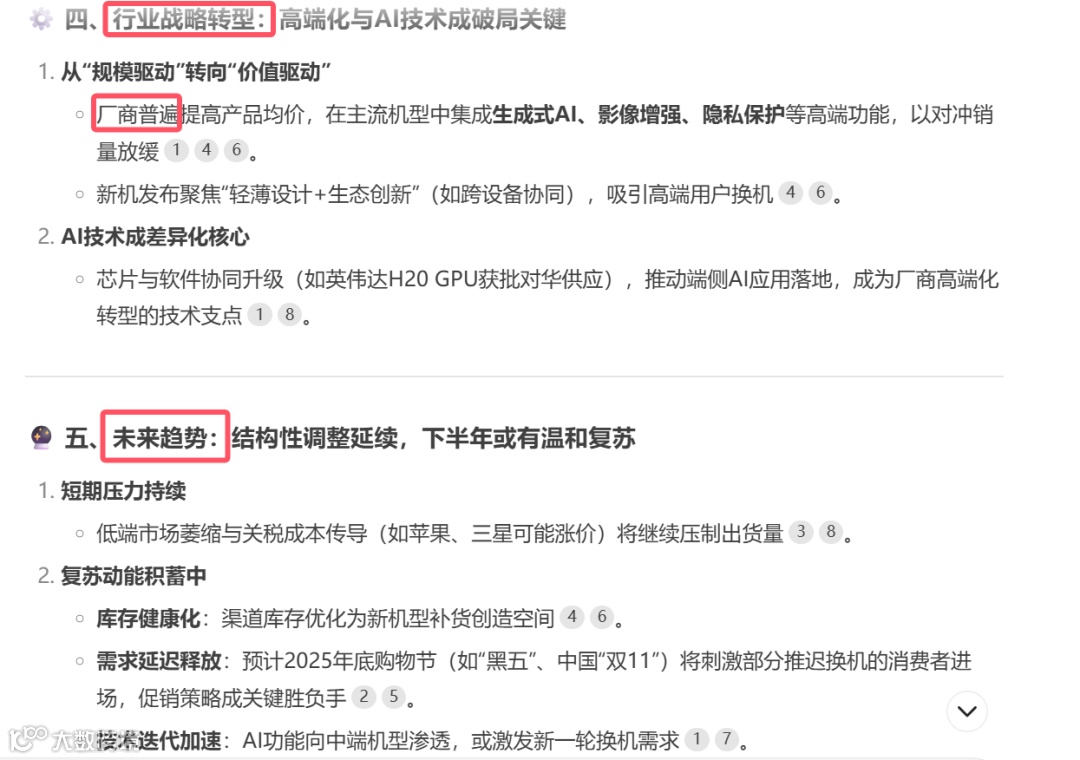 ✅ 精准指令:"分析2024-2025年智能手机行业的市场规模和增长趋势