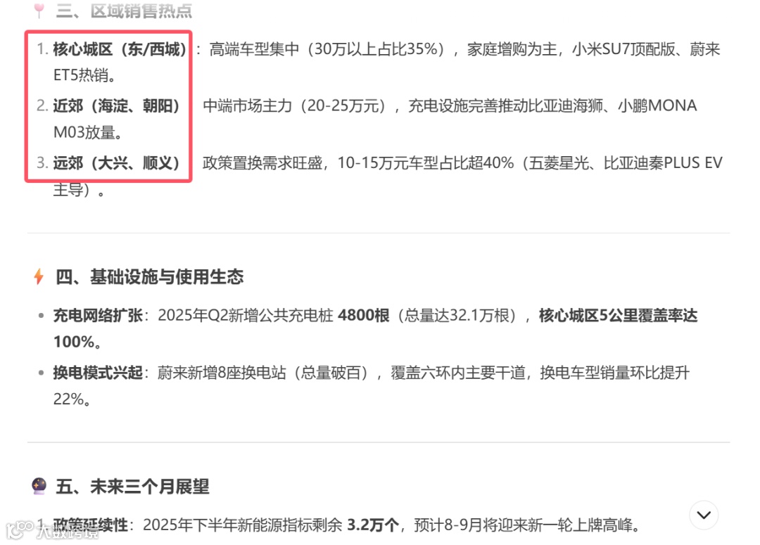 ✅ 精准指令:“分析过去3个月内北京地区新能源汽车销售数据变化