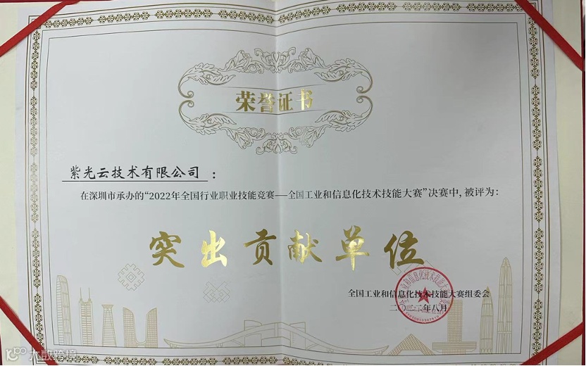 在2022年全国行业职业技能竞赛—全国工业信息化技术技能大赛中,紫光云公司凭借卓越的技术实力、创新的解决方案以及出色的团队表现,荣获突出贡献奖。体现了紫光云在工业信息化领域的领先地位,也彰显了公司对于技术创新和人才培养的高度重视。