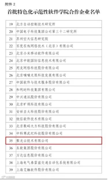 2022年,紫光云助力天津大学智能与计算学部,入选教育部、工业和信息化部公布的全国首批特色化示范性软件学院名单,紫光云入选首批特色化示范性软件学院合作企业名单。