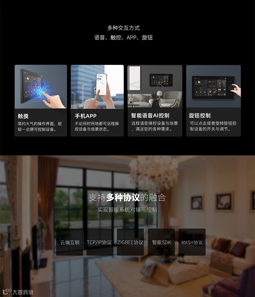 当然了,除此之外在使用中控屏时,绝大部分操作则是使用手机APP、语音远程控制实现不想起身,所有设备功能一键搞定;不想手动操作,只需说一声“打开灯光”、“开启回家模式”……语音助手立即响应指令,解放双手。在多种操控下,玩转智能生活。