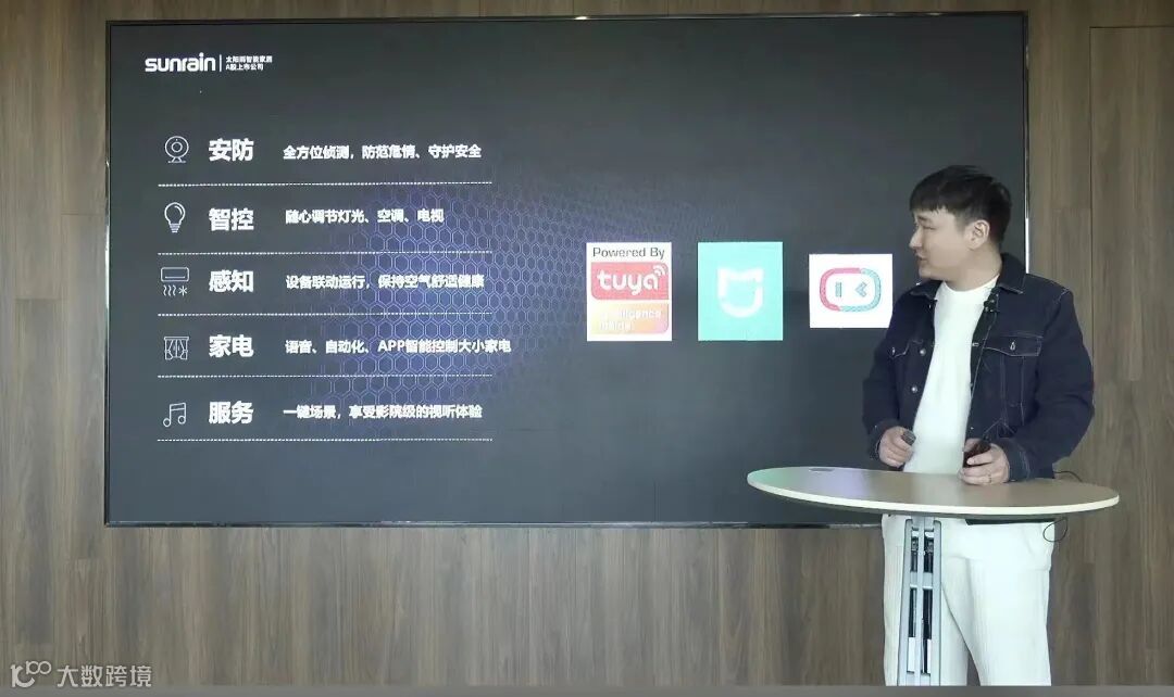在发布会的新产品发布环节,迪捷通产品经理谢沛霖登台为与会嘉宾详细介绍发布产品,强势展现公司的科技硬核实力,重磅发布了SUNRAIN智能家居产品线中的体验套餐和全屋套餐,从需求度和适用性入手,为客户提供双向选择。