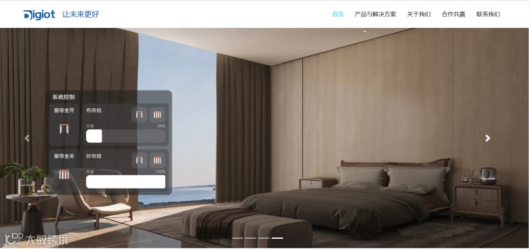 官网主要分为首页、产品与解决方案、关于我们、合作共赢、联系我们五个方面。