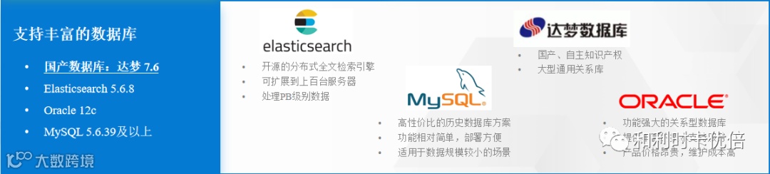 软件系统同时支持多个多种数据库灵活配置,让客户可以任意配置各个核心数据库部分,以部署在多个电脑上进行负载均衡, 甚至一个系统同时连接3种种数据库或者更多数据库, 充分利用分工职责明确原则