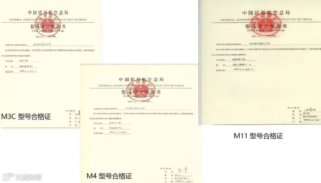 ✓ 获民航局3张型号合格证(TC)及2张生产许可证(PC)