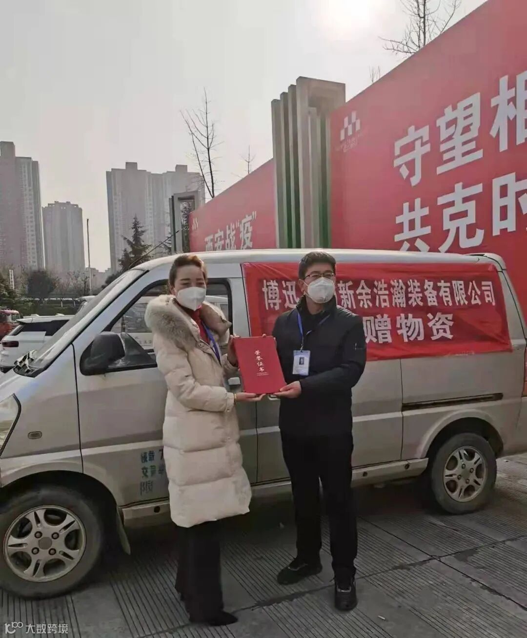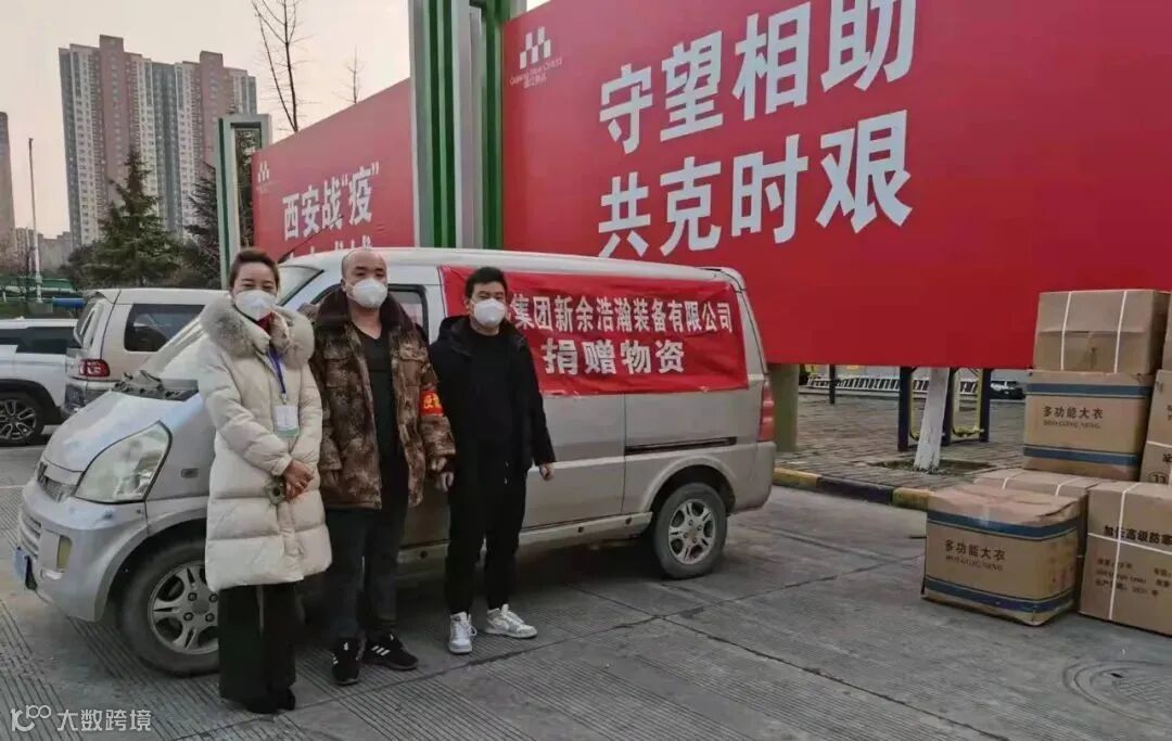 西安英雄——疫情防控工作人员接收博迅集团新余浩瀚装备捐赠的防寒服。