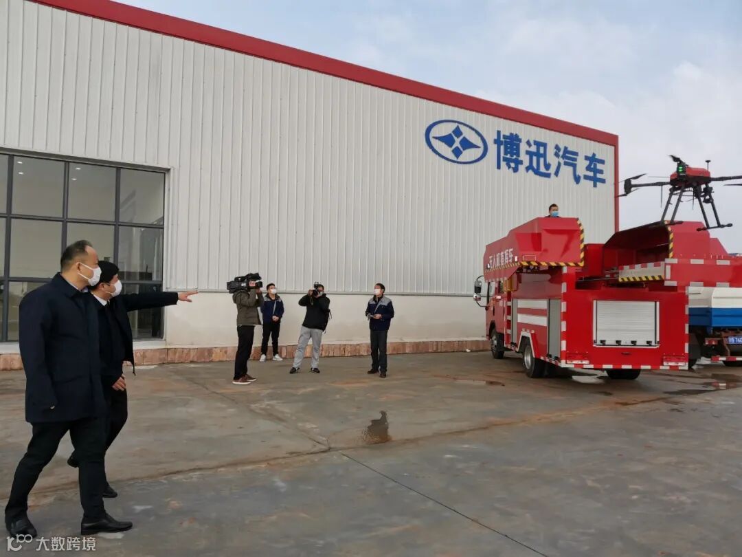 蒋书记参观完博迅汽车展厅会,在春日阳光下,与博迅公司负责人李总亲切交谈,对企业发展项目寄予厚望,希望博迅公司能在解决世界性消防难题发挥创新引领作用。