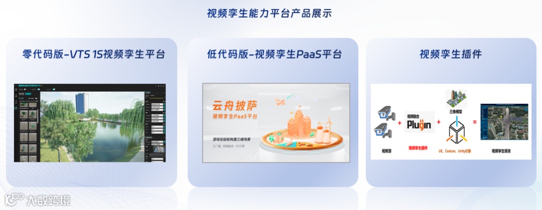 视频孪生能力平台:TO D,为有开发能力的合作伙伴提供底层开发平台,构建业务生态。目前视频孪生能力平台包含:“玄鸾”视频孪生VTS平台(零代码版)、“云舟披萨”视频孪生PaaS平台(低代码版)、视频孪生插件(UE版、Cesium版、Unity版)等多个产品系列。更多能力平台持续研发中。