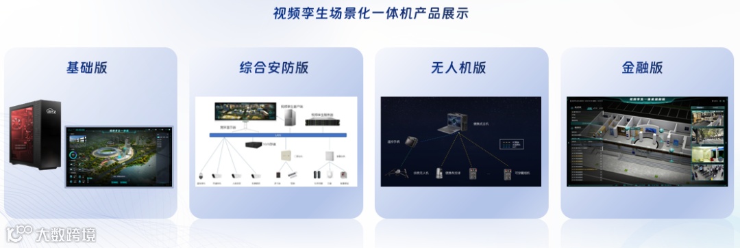 视频孪生场景化一体机:TO B,实现标准功能、标准场景、标准定价。降低用户成本和使用难度,促进渠道销售。目前视频孪生一体机具有基础版、综合安防版、无人机版、金融版等多个产品系列。校园、电力、工地等更多场景一体机持续研发中。