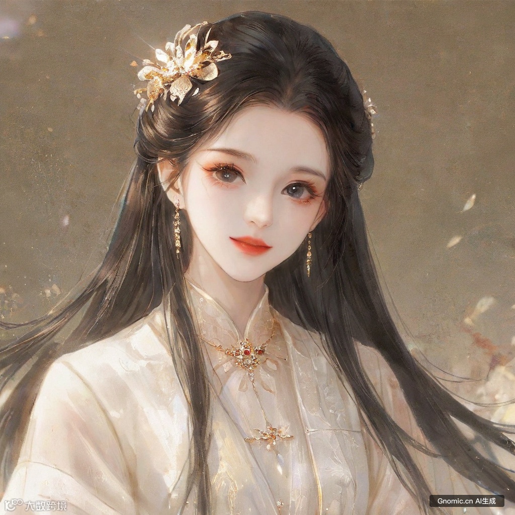 (最佳质量,4k,高分辨率,杰作),超精细,1女孩,写实,中国服装,奢华珠宝,金耳环,长发,独奏,上半身特写,面向观众,美丽细致的眼睛,美丽细致的嘴唇,极其细致的眼睛和脸部,长睫毛,优雅的姿势,温柔的微笑,细腻的肤质,丝绸质感的服装,光泽的珠宝,柔和的灯光,中国风背景,古典元素,高雅的艺术风格,温暖色调,背景虚化,