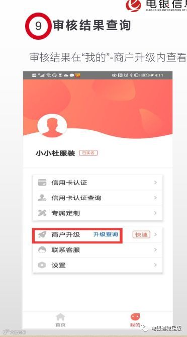 注册好机器,必须认证本人信用卡,登陆电银通APP点击我的-信用卡认证,认证一张,单笔30000,一天10万,认证2张信用卡单笔50000,一天30万,不认证信用卡不秒到。