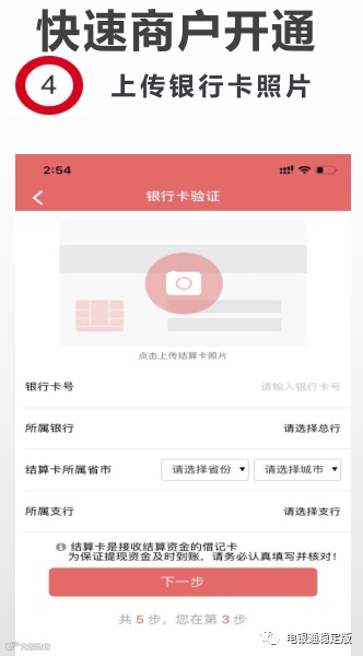 3、完成快速商户开通,商户就可以进行刷卡交易。如需开通微信支付宝收银,需开通小微商户。 按如下操作: