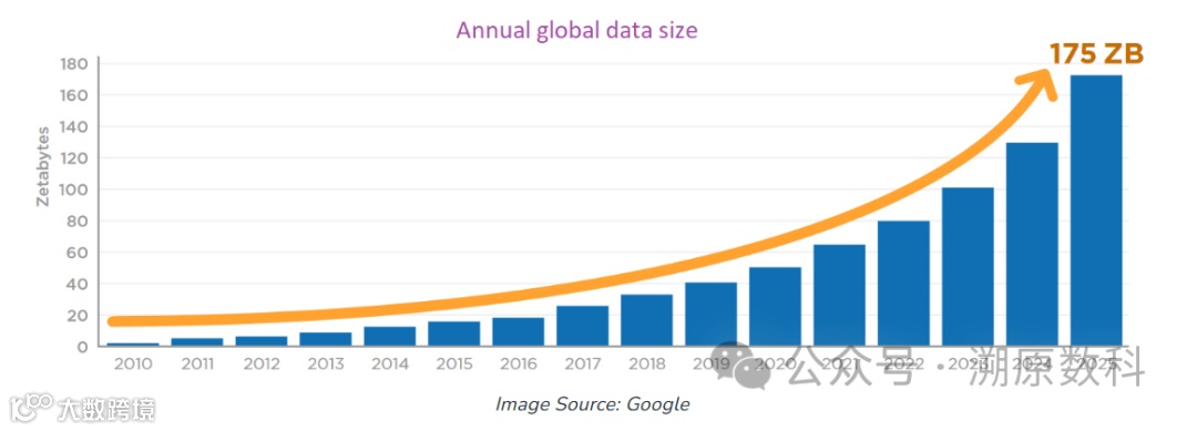 首先,大数据确实很大。尽管新技术已经被开发用于数据存储,但数据量大约每两年就会翻倍。预计2025年全球数据量将达到175 Zettabytes(10的21次方)。组织仍然在努力跟上数据增长的步伐,并寻找有效的存储方式。