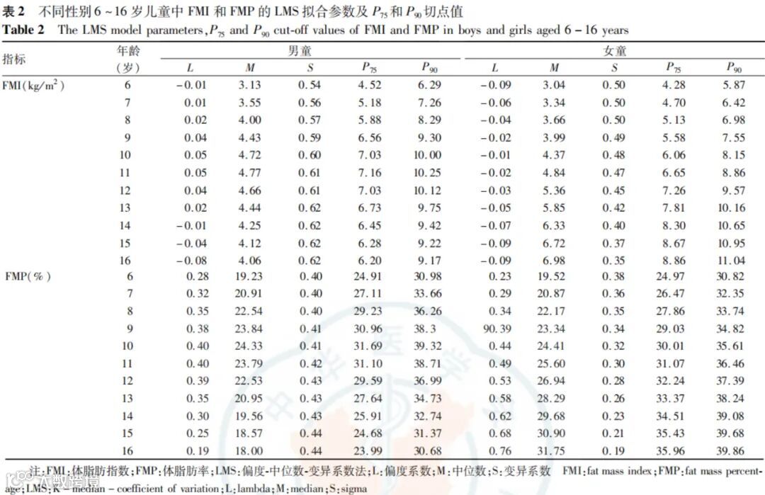 综上,FMI和FMP能够更加真实反映儿童体脂肪状况,基于FMI和FMP的体脂过多、肥胖诊断切点具有一定实用参考价值,有助于为慢病精准评估和防治窗口“下移”提供技术支撑。