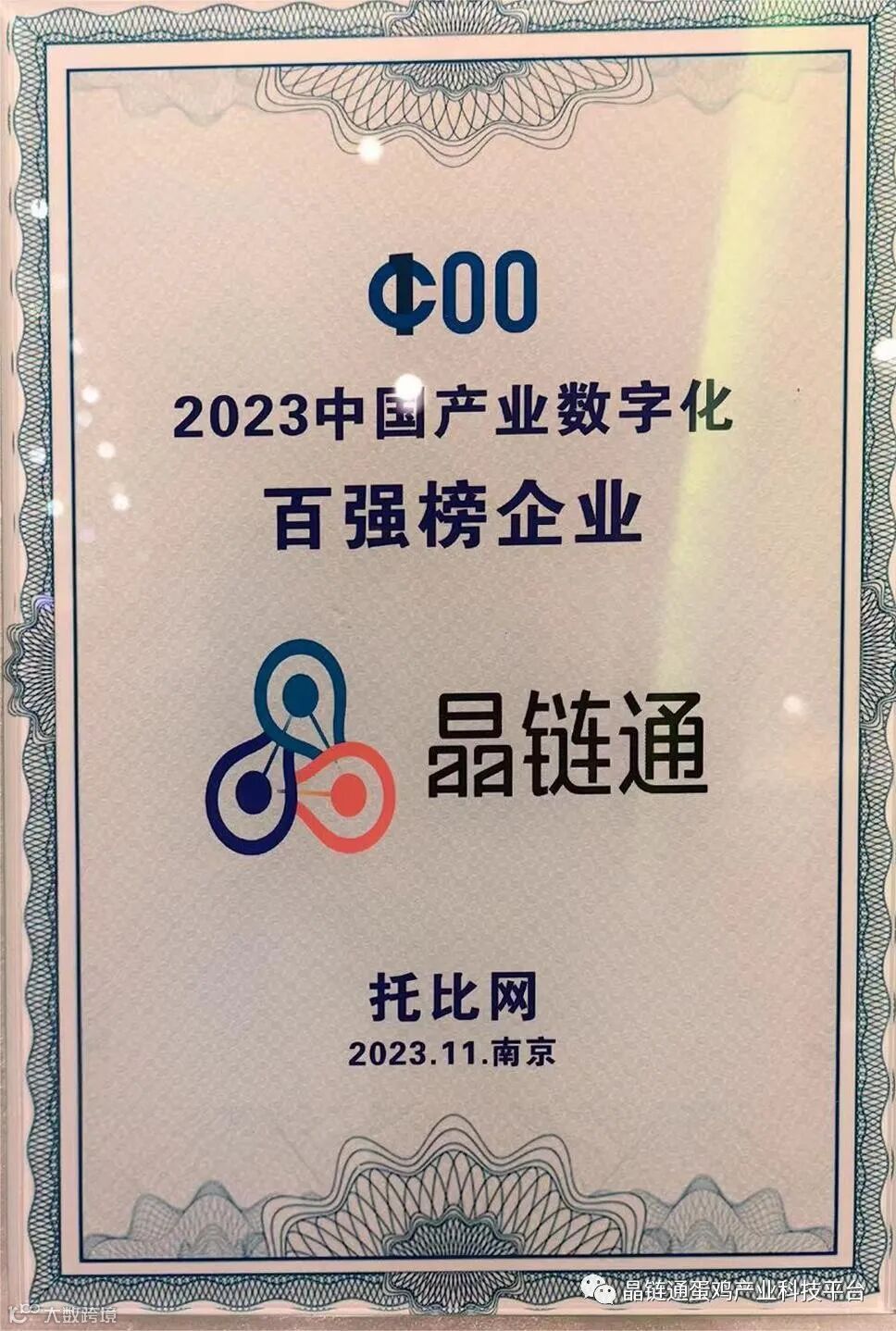 1.晶链通亮相第十届中国产业数字化大会,入围“2023中国产业数字化百强榜”