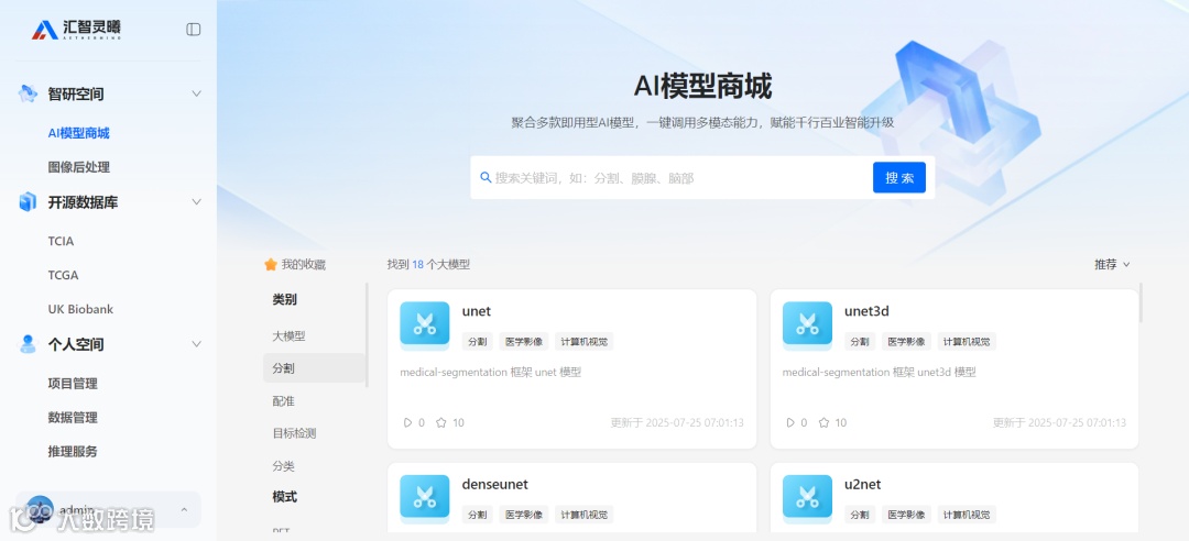 作为专注于AI技术落地的创新平台,我们深度整合100+开源AI模型,覆盖分类、检测、分割全任务类型,适配CT、MR、PET、病理等多模态医疗数据;同时融合通用大语言模型与医疗大语言模型,构建全面能力矩阵。