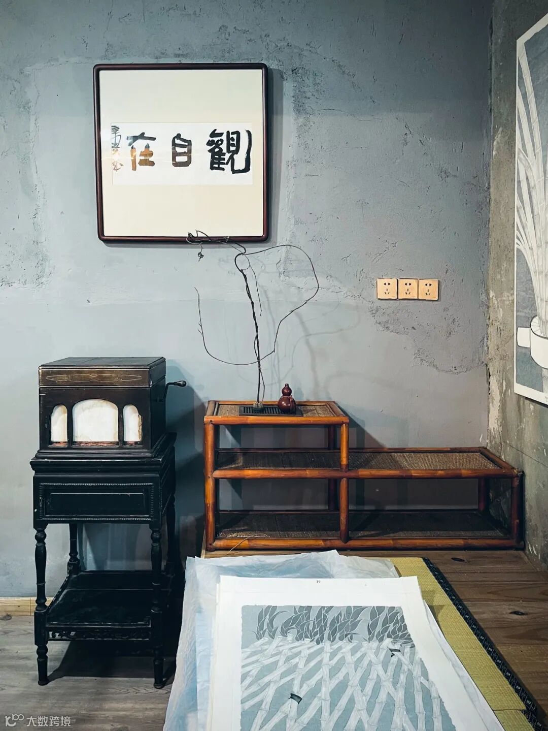 住进来之后,我带来的唯一装饰品就是自己的作品,绘画、手稿、瓷器,和原生态的氛围特别搭,一下子给我很放松的感觉。