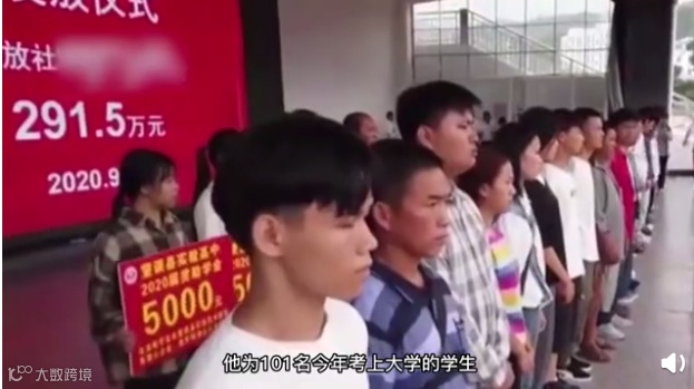 “从2012年至今,刘秀祥自己资助或对接资助的学生已经达到一千九百多人。截止到2020年九月,他为101名已经考上大学的学生对接了资助,资助金额共计290多万元。