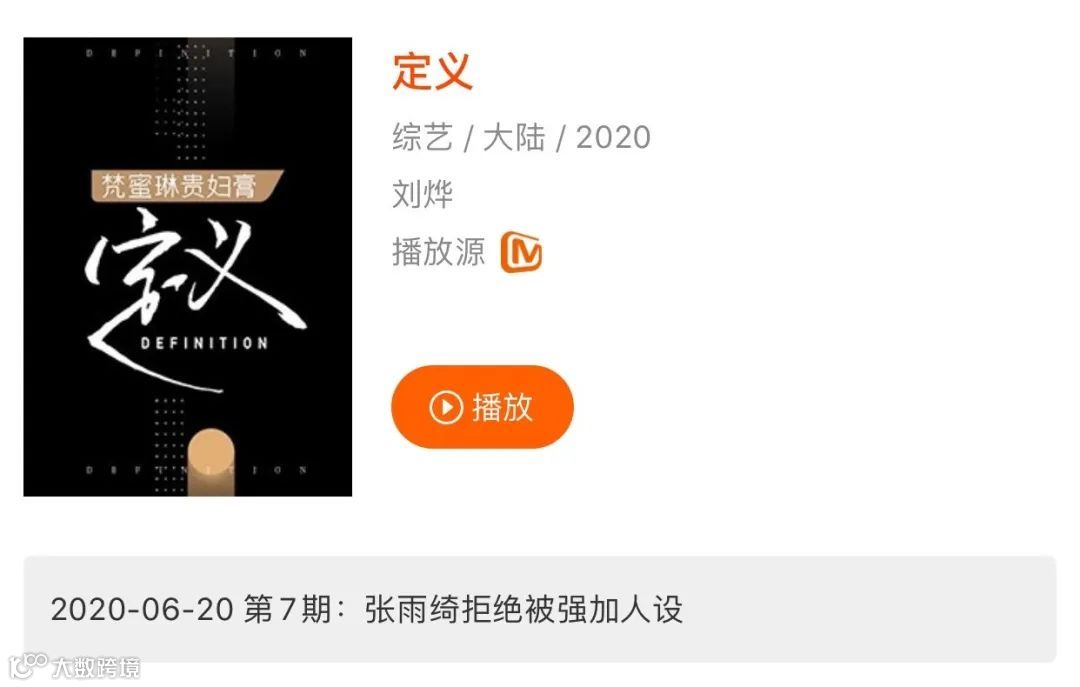 但伊能静并没有对此作出任何回应,反而是随着舆论的愈演愈烈,芒果TV下架了这期采访,目前最新的采访停留在第7期,关于张雨绮的。