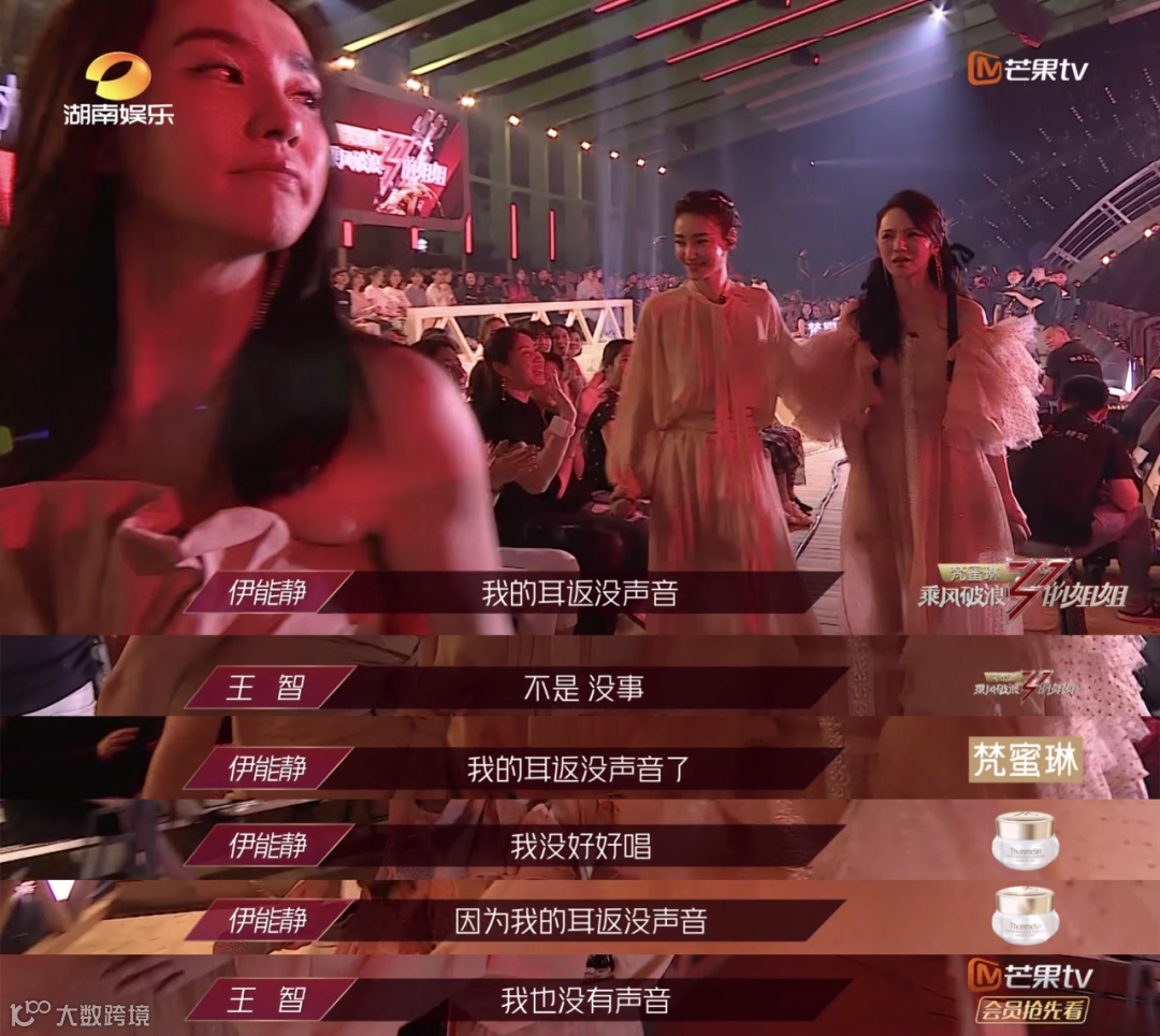 这时候伊能静又开始了,说自己没好好唱,因为耳返没声音,这句话她强调了三遍,反倒是王智和王丽坤一直在安慰她,而她好像是没听见似的,一直在说耳返。