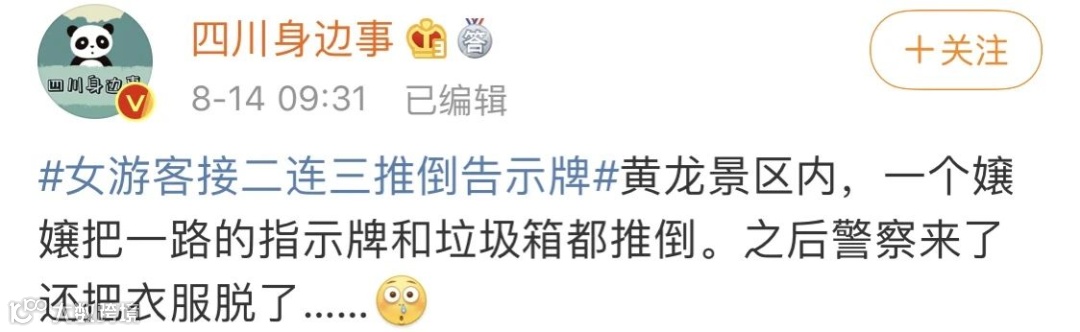 封面新闻 《手欠!女游客在黄龙景区故意推倒多个垃圾桶,结果...》