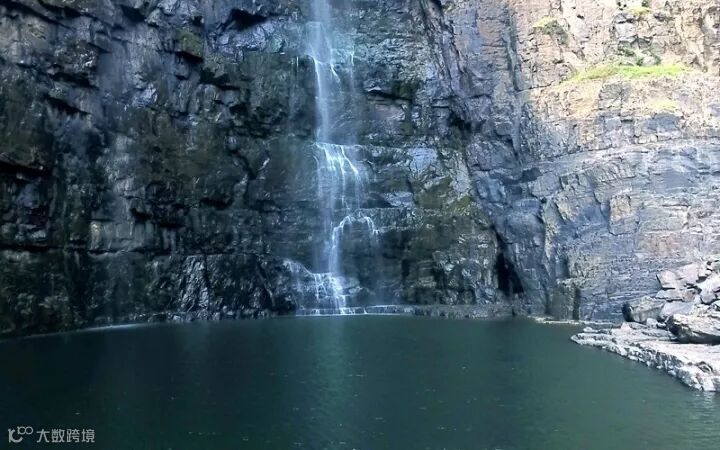 远处的村落炊烟袅袅,稻田里金色的波浪在翻涌;近处,大布河蜿蜒而过,在山崖断裂处,腾空而下,形成300多米落差的瀑布。柔美与壮丽,全在一谷之间。