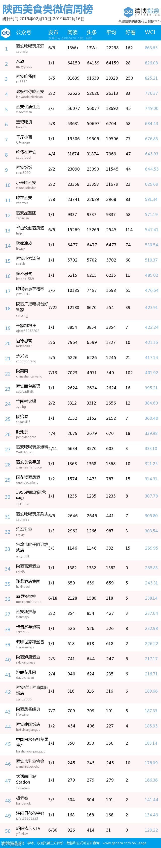 最新陕西美食类微信公众号50强重磅出炉!TOP50上周共计发文218篇,阅读总量达到70万+,好看总量达到1633。数据相比上周有所上升,期待下期各大平台继续加油哦!
