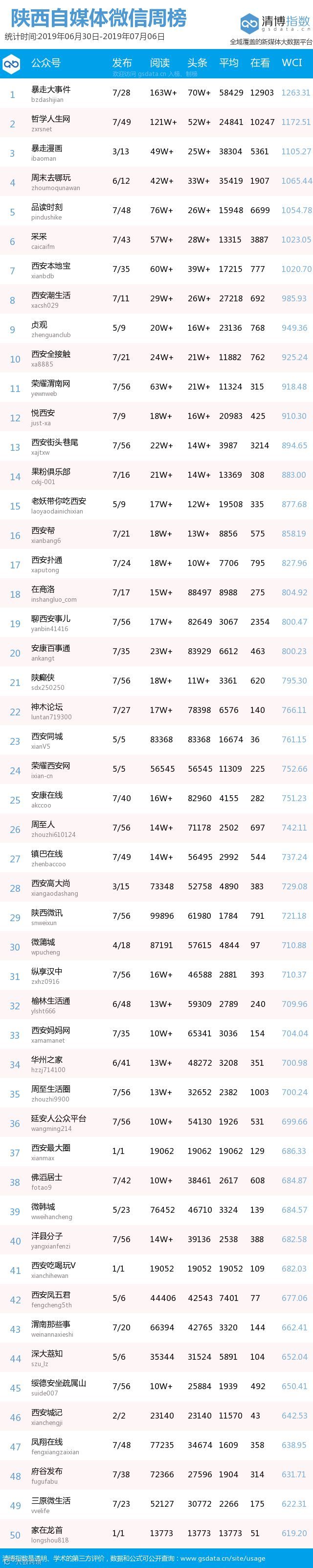最新陕西自媒体微信公众号50强重磅出炉!TOP50上周共计发文1510篇,贡献阅读总量1150万+,好看总量6万+,贡献阅读总量较上周有所下降,好看总量较上周有所上升,各大平台要继续努力哟~(查看榜单可直接下滑)