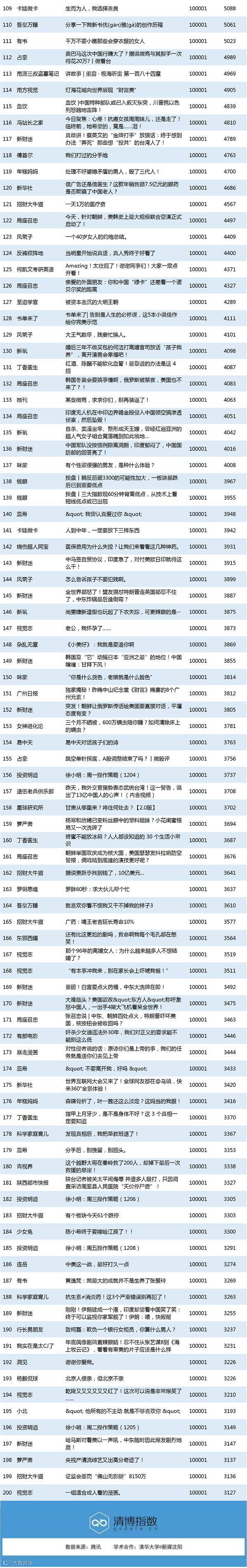 本榜单是经过降权和除名后的,清博指数将持续关注微信公号数据造假事件,欢迎举报,投诉邮箱:huangxiaobao@gsdata.cn。