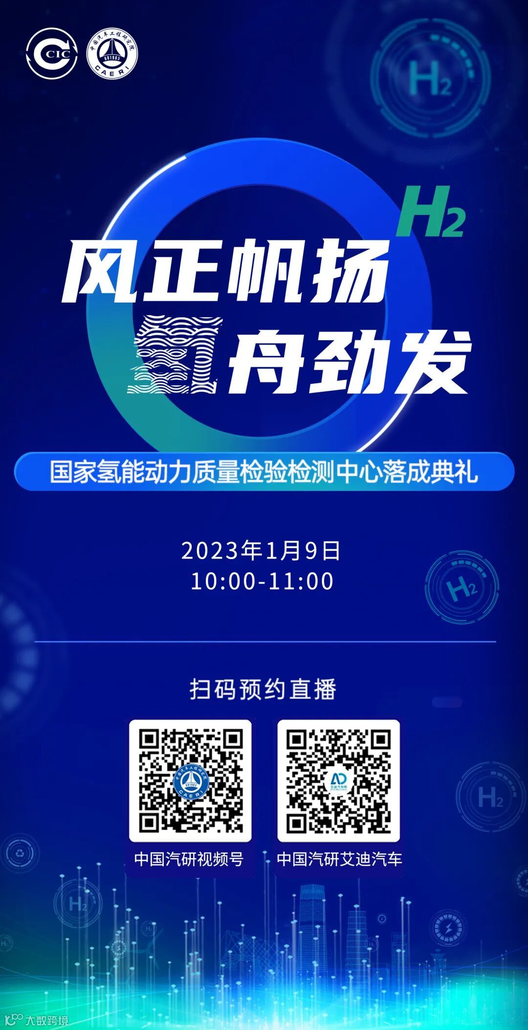 2023年1月9日上午10:00,由中国汽研投资建设的国家氢能动力质量检验检测中心落成典礼将正式启幕,诚邀行业共同见证。