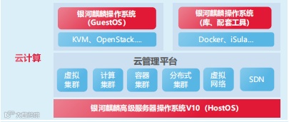 银河麒麟操作系统以HostOS作为云平台的底座操作系统、以GuestOS作为业务应用系统的底座引擎,可全面支持虚拟化、容器、微服务、分布式文件系统等云原生技术,支撑构建大型数据中心服务器高可用集群、负载均衡集群、分布式集群文件系统、虚拟化应用和容器云平台等,可部署在物理服务器和虚拟化环境、私有云、公有云和混合云环境。