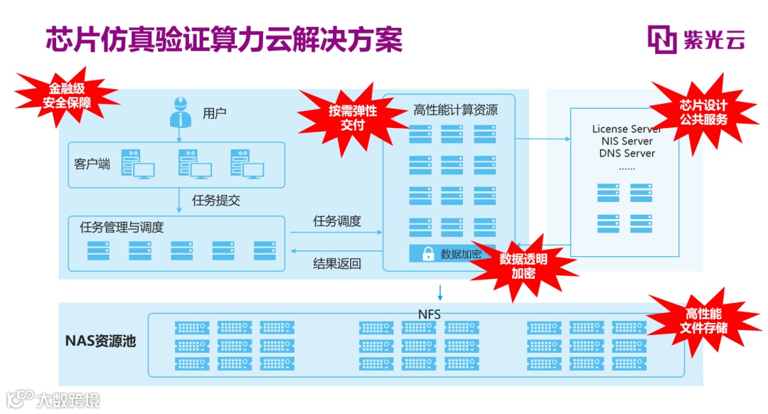 邓世友表示,根据对客户需求的调研与分析,前端和后端对任务和作业的算力的需求是明显两极分化的。前端作业设计仿真的典型特征是高并发、多线程、小文件,后端设计仿真的典型特征则正好相反,要求是单线程、大文件、内存密集型。在这样的两种情况下芯片设计企业自行搭建平台,很难兼顾前后端设计两边的需求。
