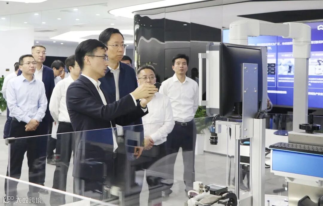 蓝书记还询问了紫光云引擎为相城区建设产业云图后在产业结构调整优化方面的成效,相城区委书记顾海东进行了相关情况介绍。一行领导还体验了基于紫光工业互联网示范产线,了解智能工厂如何实现定制化下单和自动化生产的全过程,以及AI检测在产品品质管控过程中的应用。