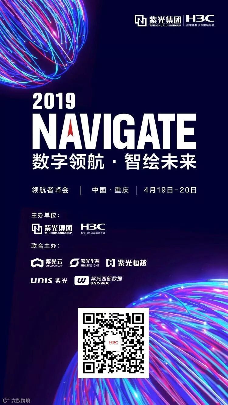 2019年4月19日-20日,由紫光集团和新华三集团主办,以“数字领航 智绘未来”为主题的2019 NAVIGATE 领航者峰会,将在重庆悦来国际博览中心及国际会议中心举办。